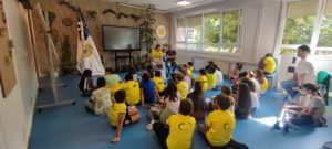 Jon Lizarralde eskolara etorri da Banderarekin