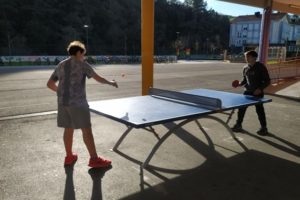 Udazken eta negutik aurrera, Zaraguetan frontoiko kiroletan eta mahai-tenisean (Ping-Pong) jolasteko aukera dugu patioan.
