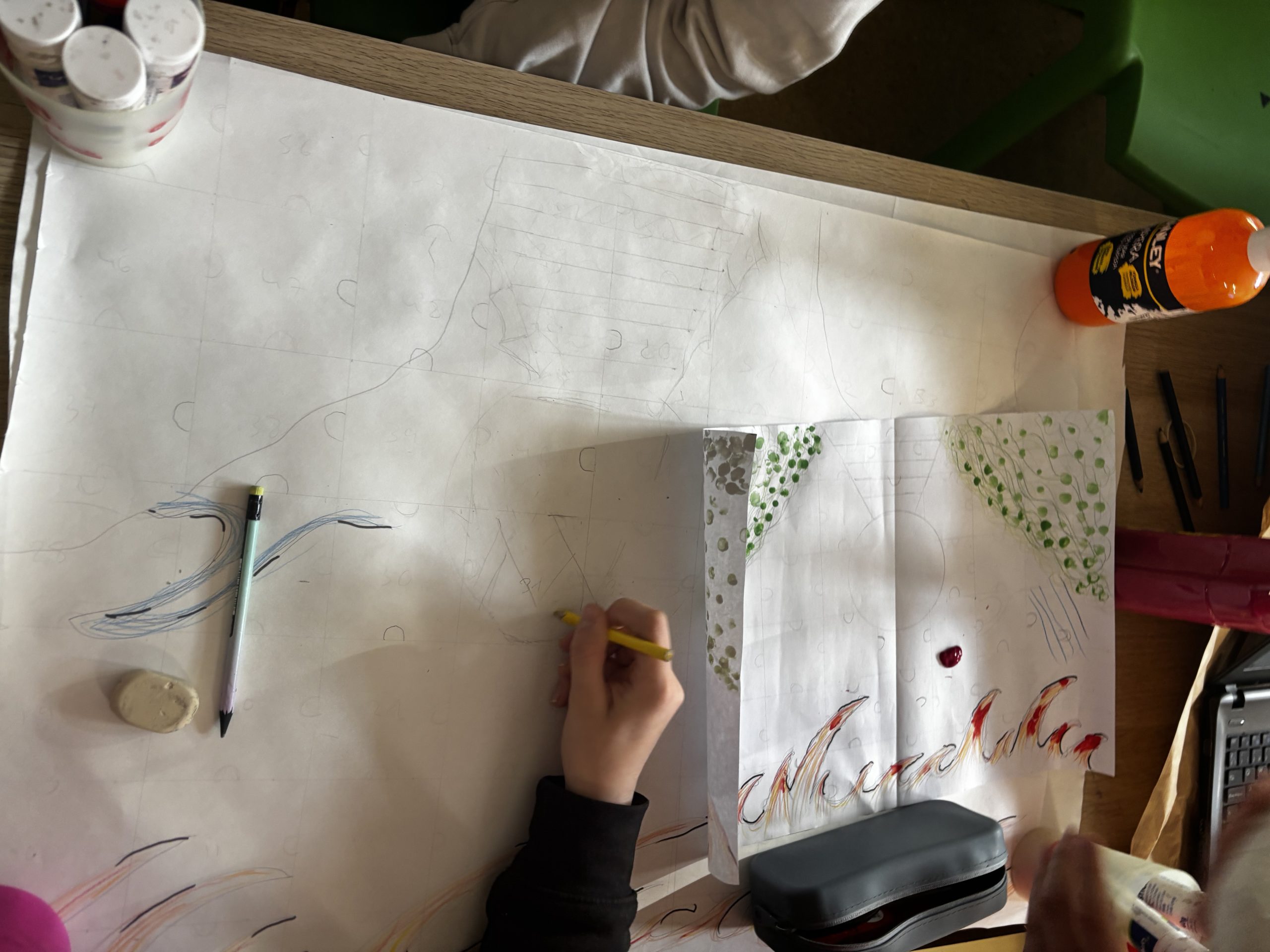 6. mailako ikasleok Arte Hezkuntzan, talde txikitan elkartuta, mural kolaboratibo bana sortu dugu. Talde osoak elkarrekin diseinatu eta margotu ditu lanak, ideiak partekatu eta espazioa modu sortzailean erabilita. Hemen ikus ditzakezue prozesuko une batzuk eta azken emaitza.