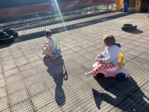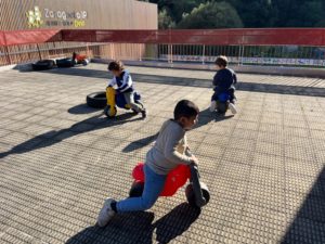 Horrez gain, neba-arreba eta lehengusu zaharrenak agurtzen ditugu balkoitik, baita gurpilak mugituz korrika egin, ezkutaketara jolastu… Hamaiketakoa bertan egitea ere gauza ederra izaten da.