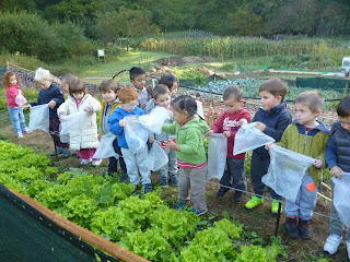 letxuak biltzen ibili dira. Haurrak poz pozik daude arratsaldean etxera